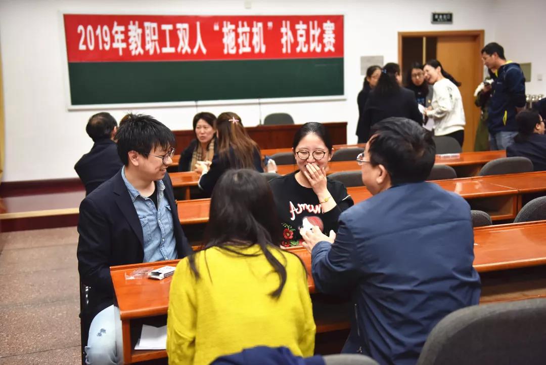 教职工双人“拖拉机”扑克牌比赛,既展示了个人的技战水平,又展现出协作凝聚的智慧。