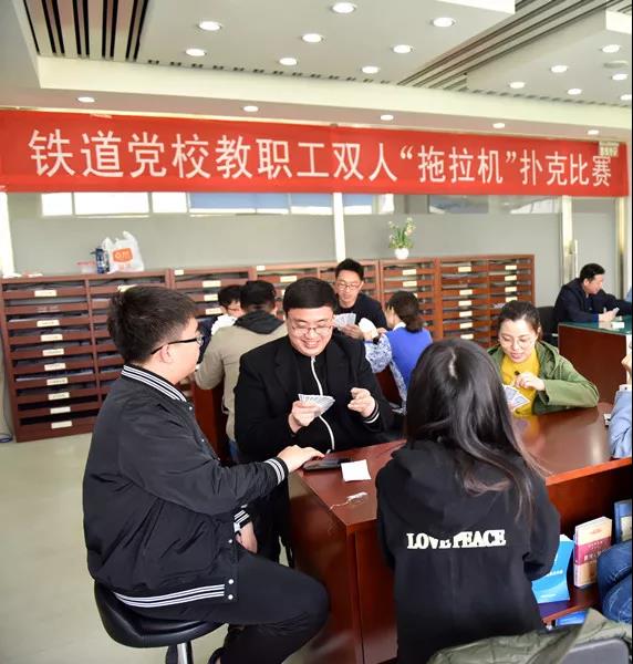 为丰富教职工业余文化生活,铁道党校工会于4月12日中午举办2018年度双人扑克牌比赛。校委领导亲临活动现场为大家加油助威。