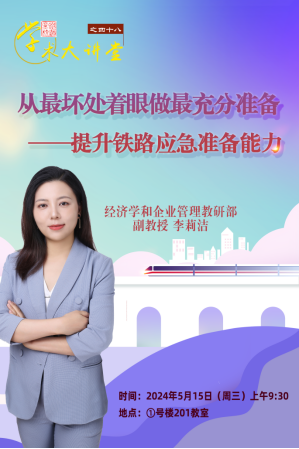 2024年5月15日,铁道党校举办第48期学术大讲堂。由经济学和企业管理教研部副教授李莉洁讲授《从最坏处着眼做最充分准备——提升铁路应急准备能力》。